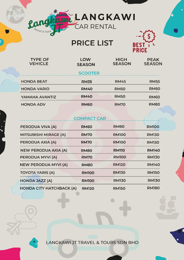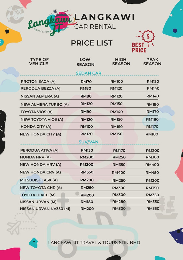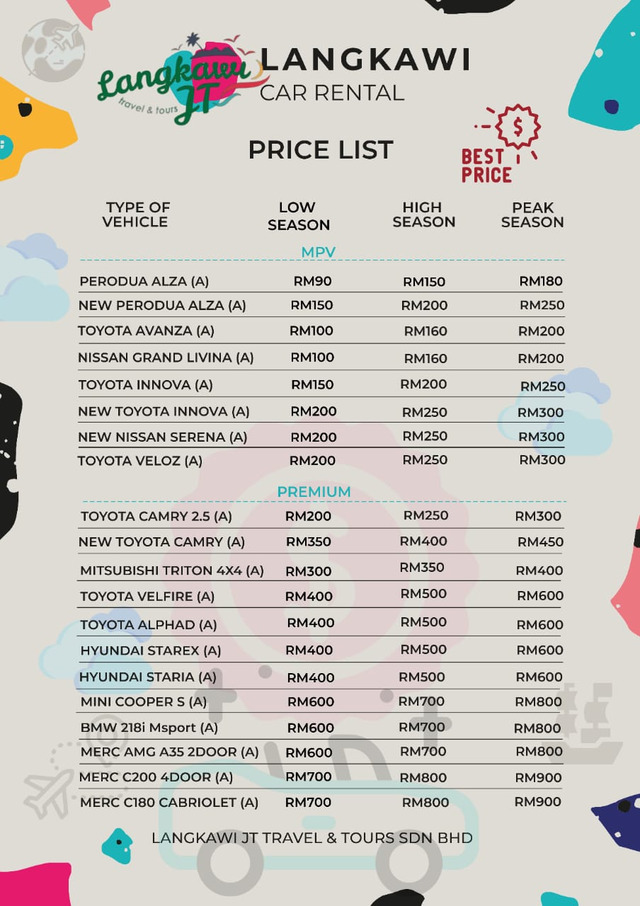 Jom dapatkan khidmat kereta sewa dengan Langkawi JT Travel and Tours hari ini!